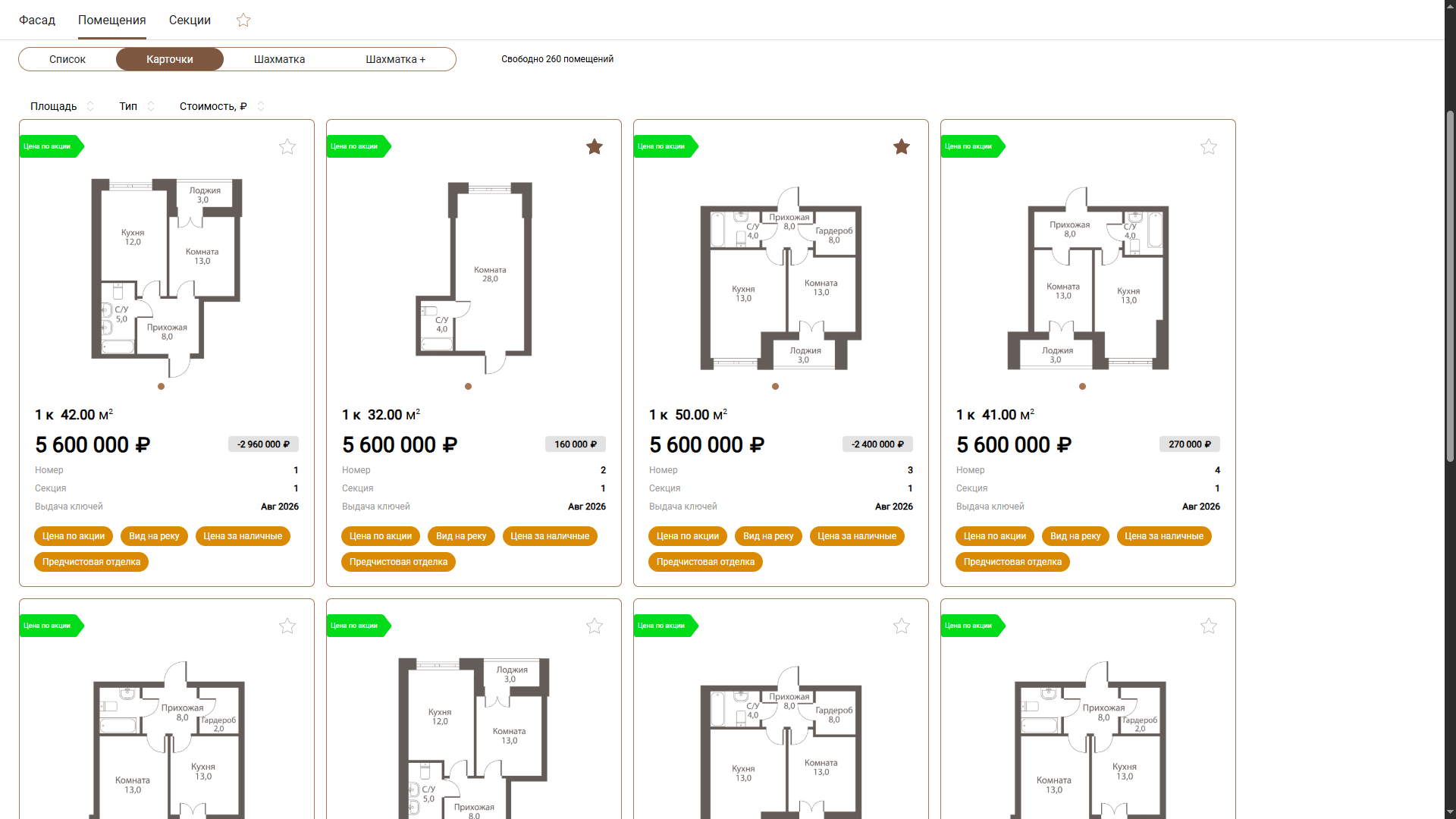 История по каждой квартире - кто бронировал, изменение статуса и стоимости